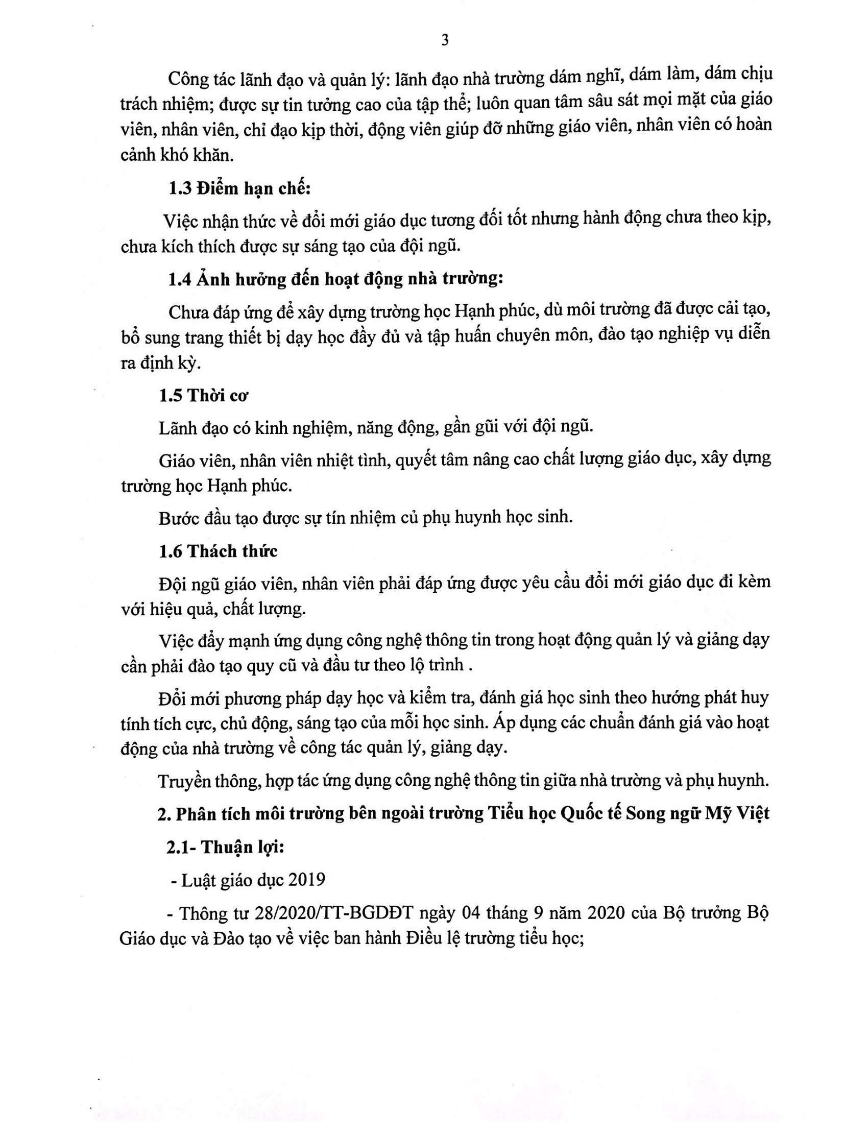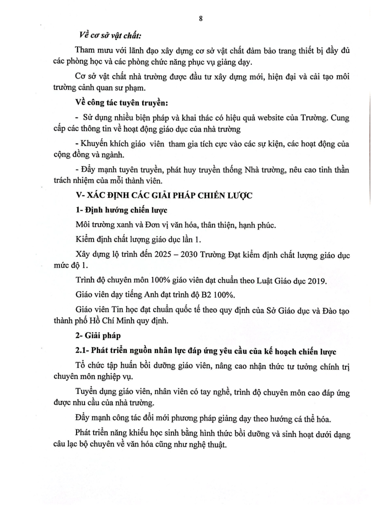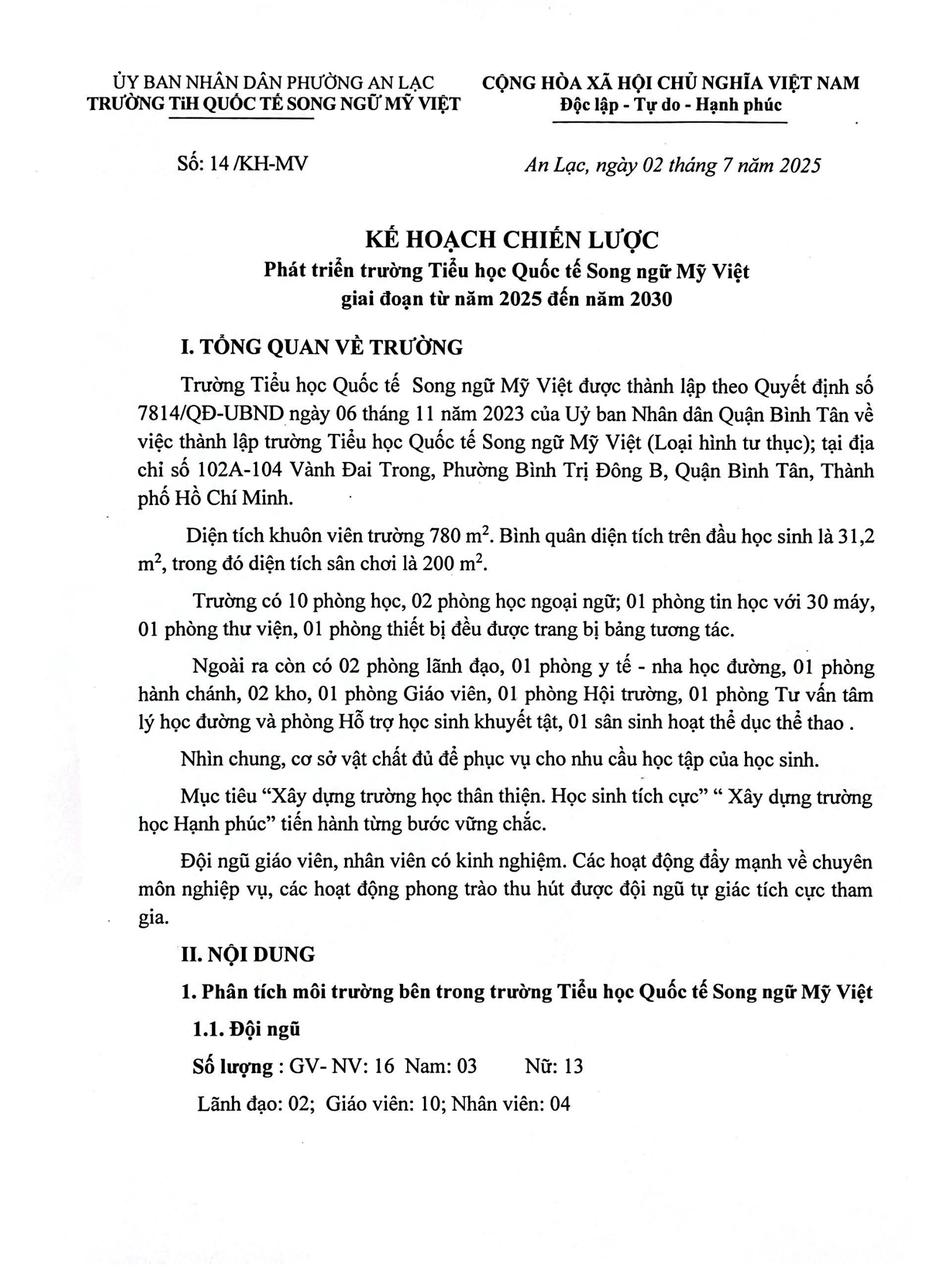 KẾ HOẠCH CHIẾN LƯỢC PHÁT TRIỂN TRƯỜNG TIỂU HỌC QUỐC TẾ SONG NGỮ MỸ VIỆT GIAI ĐOẠN TỪ NĂM 2025 ĐẾN NĂM 2030